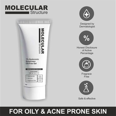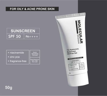 Experience next-level sun protection with MOLECULAR STRUCTURE Sunscreen. Boasting a powerful SPF 50+ and PA++++ rating, this lightweight, fast-absorbing formula shields your skin from UVA, UVB, and blue light for up to 80 minutes—making it essential for daily defense. Enhanced with niacinamide, panthenol, and urea, it deeply hydrates and soothes, promoting a radiant, healthy complexion without feeling greasy or sticky. Its sleek, 50g travel-friendly tube fits easily in your bag for effortless, on-the-go reapplication. Suitable for all skin types and invisible on all skin tones, the sunscreen ensures smooth, non-whitening coverage that blends seamlessly with your routine.